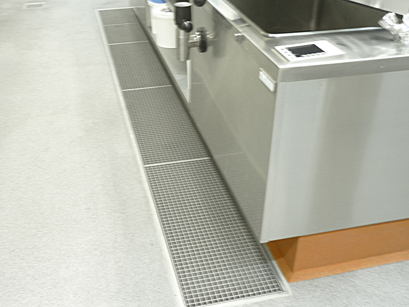 - rutschhemmender Küchenboden gemäß Regeln nach DGUV 108-00 von R9 – R 12 V4 - V6.